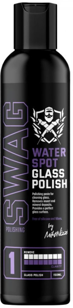 SWAG Water Spot Glass Polish - Leštící pasta na sklo (150ml) je inovativní produkt navržený pro efektivní odstranění tvrdohlavých minerálních usazenin z povrchů skla. Tento pokročilý přípravek je ideální pro přípravu skleněných povrchů před aplikací hydrofobních povlaků, jako jsou tekuté stěrače nebo keramické ochrany. Jeho složení je speciálně vyvinuto pro profesionální detailingová studia, ale je vhodné i pro běžné uživatele, kteří chtějí obnovit původní vzhled skleněných povrchů.