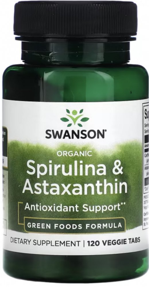 Swanson Organická Spirulina a Astaxanthin 120 tablet