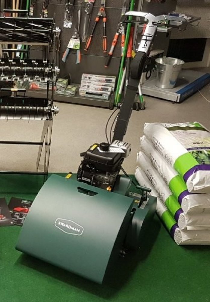 Swardman 2400 W 45 cm 6 km/h ocelové 49 kg s pojezdem benzínové vřetenové 40 l 600 m2 čtyřtaktní 45 mm s ocelovým košem