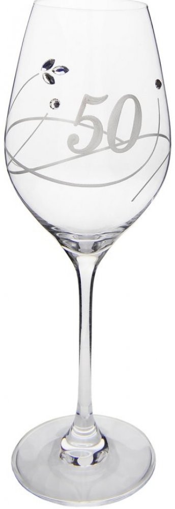 Elegantní sklenice na víno s broušeným věkem jubilanta a zdobená krystaly Swarovski.