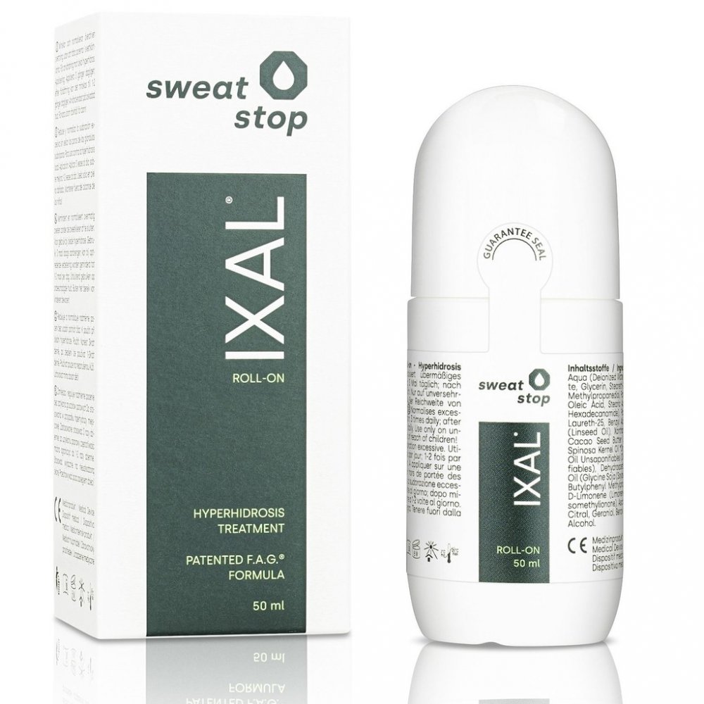 Antiperspirant bez hliníku SweatStop IXAL roll-on snižuje a normalizuje nadměrné pocení a přitom nijak neblokuje potní žlázy. IXAL roll-on je unikátním přípravkem proti nadměrnému pocení bez hliníku! IXAL roll-on s celosvětově patentovanou látkou F.A.G.® je určen proti nadměrnému pocení v podpaží a upravuje jej do normálního stavu.