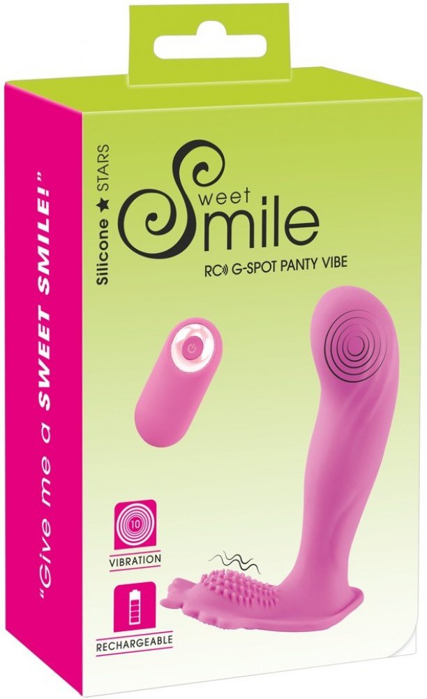 Sweet Smile Rechargeable Touch-malý dobíjecí a velmi diskrétní. To je tento malý osobní masér ve fialové barvě. Díky svému plochému designu může být diskrétně nošen v kalhotkách. Má 10 vzrušujících vibračních režimů - pro co nejvíce soukromého potěšení. Je 9,4 cm dlouhý, 4,4 cm široký, max. výška 2,1 cm. Materiál silikon s PU povlakem. Nepoužívat společně s lubrikanty na bázi silikonů, mohou poškodit povrch silikonových pomůcek. Vibrátor je dodáván s kabelem pro USB dobíjení. Doba chodu a nabíjení je asi 60 minut. Pro uchování zařízení s Li-on, li-pol baterií se všeobecně doporučuje mít ji při jejím dlouhodobém uložení nabitu cca na poloviční (60%) kapacitu. Nikdy neskladujte výrobek vybitý (raději už plně nabitý)! To může vést její degradaci nebo zničení. Značka Smile.