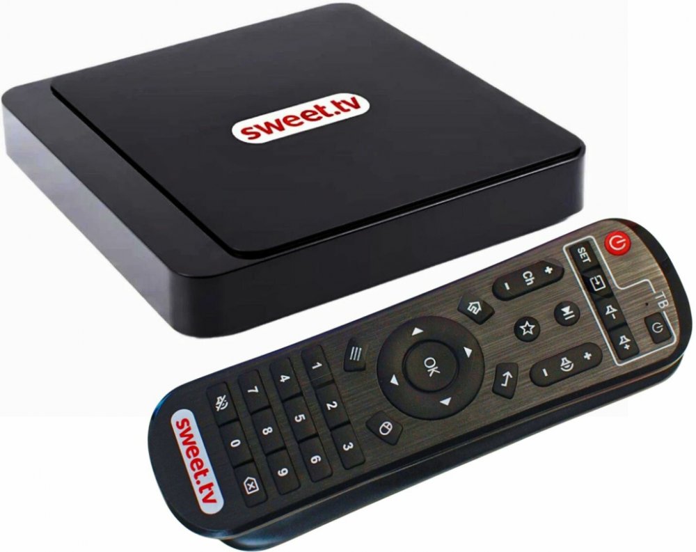 Součástí balení je programovatelný IR dálkový ovladač , který je navržen speciálně pro Sweet.TV. Ovládání je jednoduché a intuitivní, s klasickými tlačítky pro rychlý přístup k hlavním funkcím.