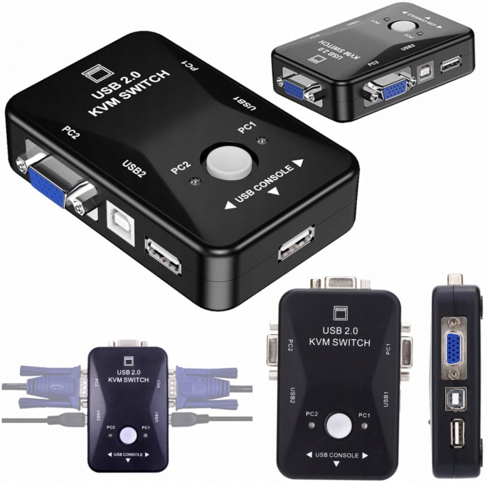 - KVM USB 2.0 VGA pro 2x PC, 2x USB