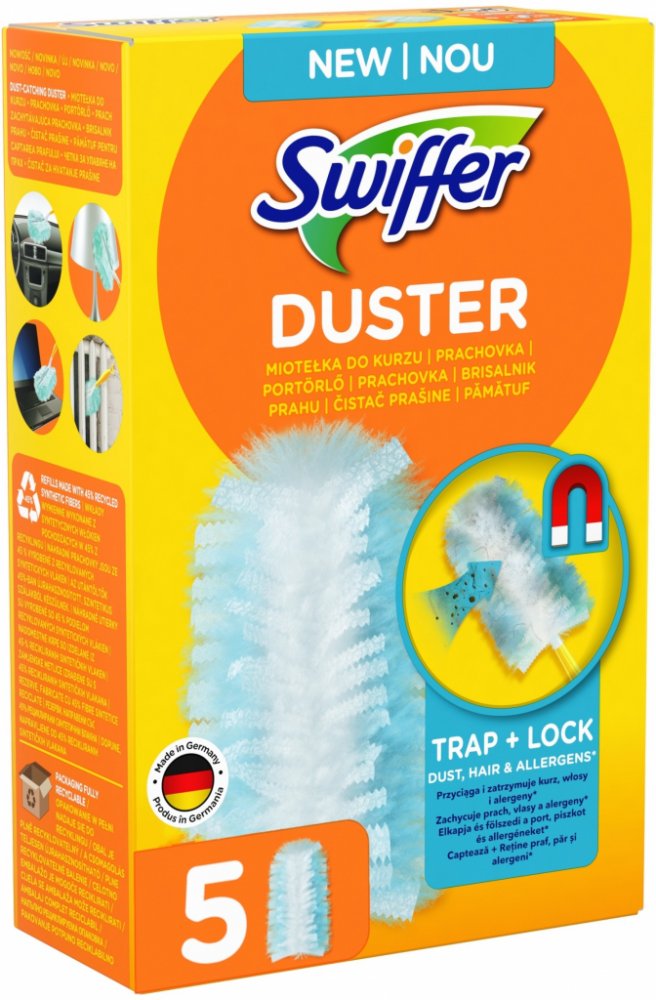 Rozlučte se jednou pro vždy s prachem vlasy chlupy srstí a dalšími nečistotami ve vaší domácnosti Prachovku Swiffer tvoří tisíce jemných vláken které se přizpůsobí všem povrchům a zákoutím Pokud máte domácí mazlíčky tak prachovku obzvláště oceníte Prachovka Swiffer je rovněž vhodná pokud se ve vaší domácnosti nachází osoba alergická na prach