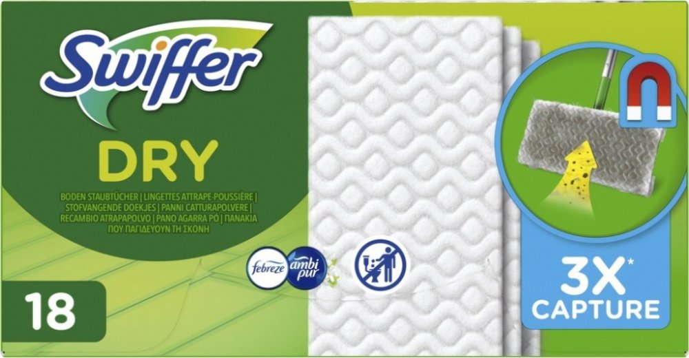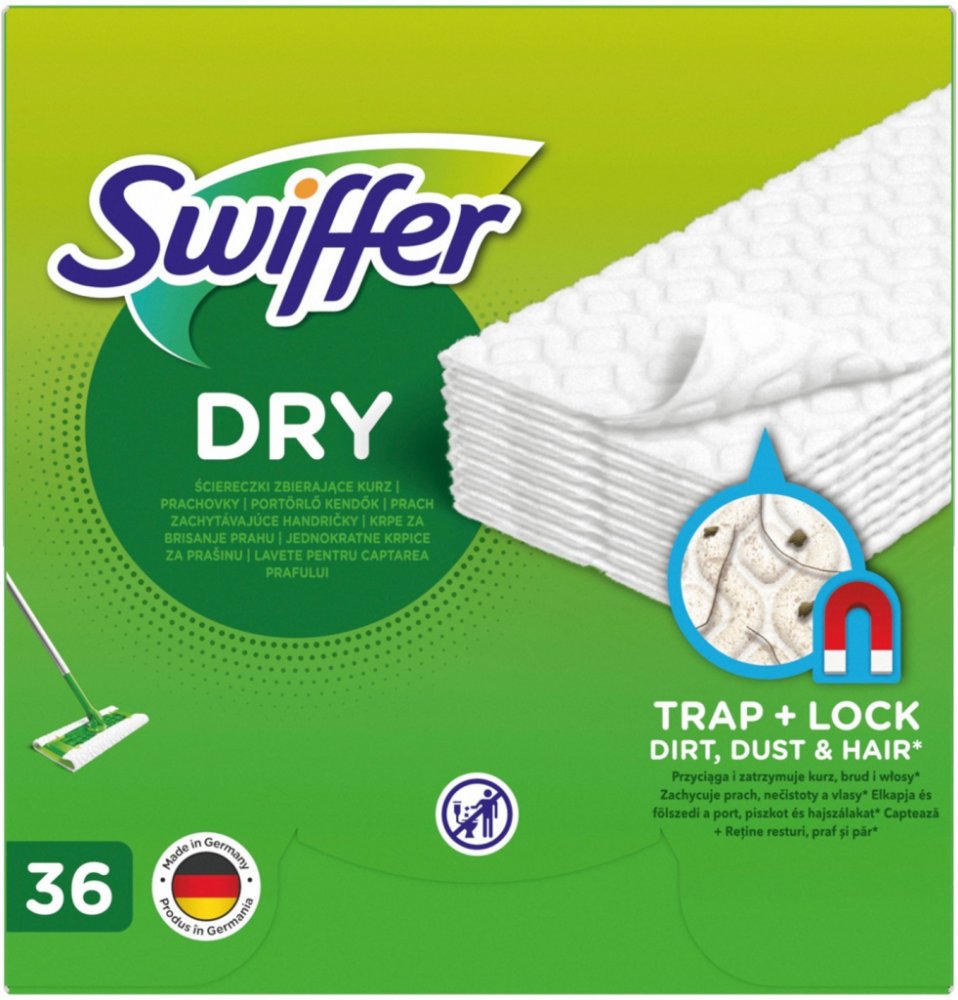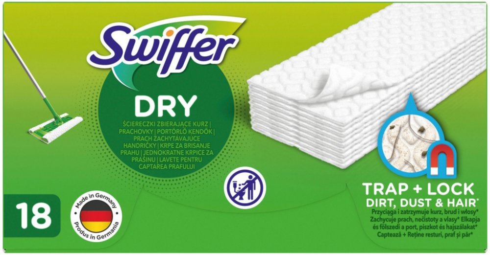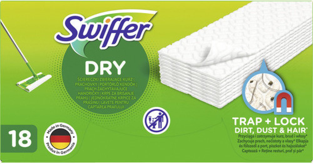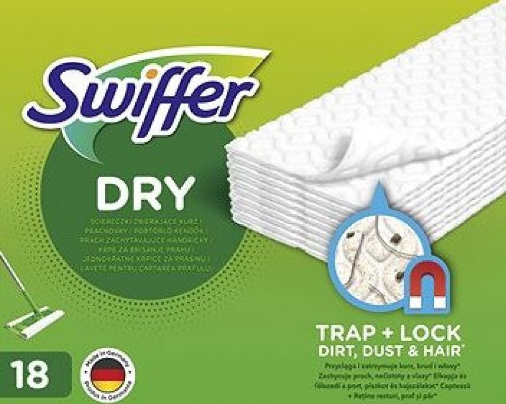 Náhradní prachovky na mop Swiffer. Prachovky zachycují 3× více nečistot, prachu, vlasů a chlupů než klasické smetáky - mají elektrostatický účinek a specifický vzor, díky kterému umožní zachycení veškerého prachu.