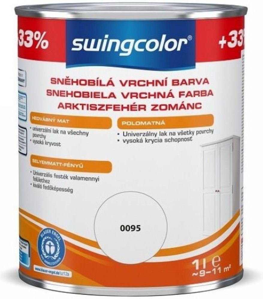 Sněhobílá vrchní barva Swingcolor je výbornou volbou nátěrové hmoty z mnoha důvodů. V první řadě je vhodná na široké spektrum povrchů, jako je impregnované dřevo, rzi zbavené železo nebo ocel, měď, zinek nebo hliník ošetřený specifickým čističem a plasty s možností lakování (jako například tvrzené PVC). Ve druhé řadě produkt výborně odolává povětrnostním vlivům, je proto ideální pro lakování plotů...