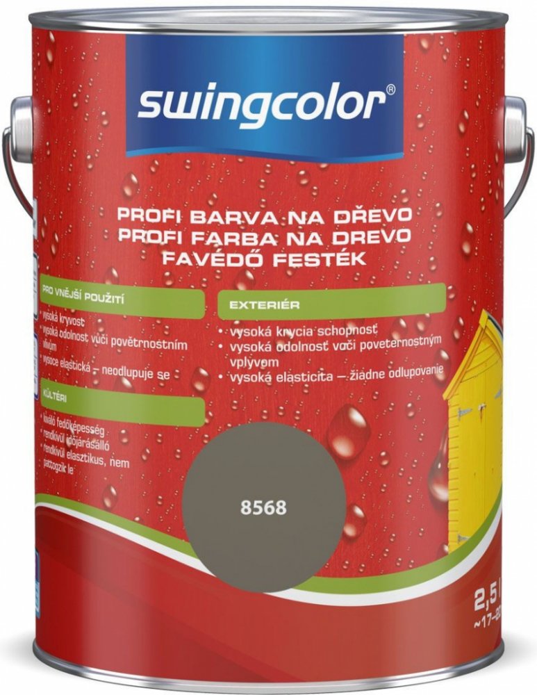 Swingcolor PROFI je barevný email na vodní bázi vhodná pro použití ve vnějším prostředí především na dřevo, hodí se však i na kovy vč. zinku a pozinkované plochy a tvrdé PVC. Je vysoce elastický, odolný proti povětrnostním vlivům, má výborné krycí schopnosti a je paropropustný. Pro zabránění prorážení látek obsažených ve dřevě doporučujeme izolační nátěr podkladovou barvou Swingcolor. Při používání prostředků na ochranu dřeva je třeba dbát zvýšené opatrnosti. Před použitím si prosím vždy přečtěte etiketu a informace o produktu.