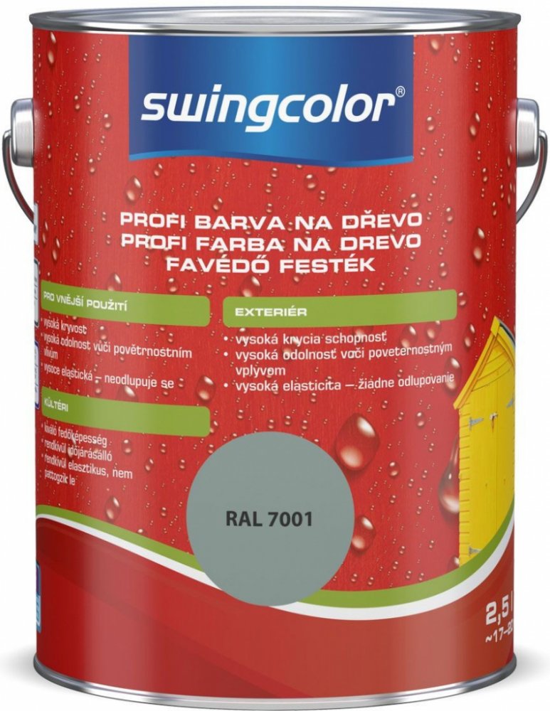 Swingcolor PROFI je barevný email na vodní bázi vhodná pro použití ve vnějším prostředí především na dřevo, hodí se však i na kovy vč. zinku a pozinkované plochy a tvrdé PVC. Je vysoce elastický, odolný proti povětrnostním vlivům, má výborné krycí schopnosti a je paropropustný. Pro zabránění prorážení látek obsažených ve dřevě doporučujeme izolační nátěr podkladovou barvou Swingcolor. Při používání prostředků na ochranu dřeva je třeba dbát zvýšené opatrnosti. Před použitím si prosím vždy přečtěte etiketu a informace o produktu.