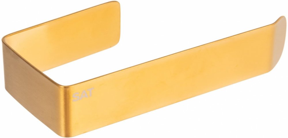 Držák toaletního papíru v barevném provedení broušené zlato. Šířka tohoto koupelnového doplňku od značky SAT je 14,5 cm a je vyroben z materiálu nerez. Montáž bez nutnosti vrtání, pouze lepením.