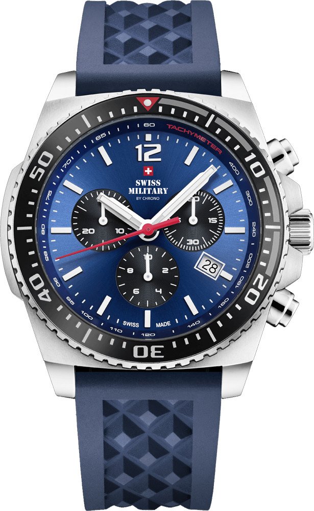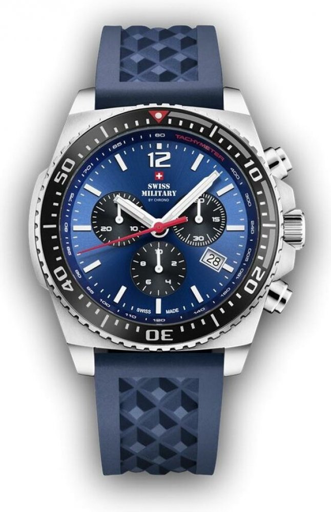 Swiss Alpine Military by Grovana analogové silikon sportovní pánské bateriové - quartz pro potápění (100+ m) 45.0 mm chirurgická ocel 100 m bateriové 110 g safírové Sport Chronograph kulaté modrá modrá s luminiscencí na přezku 2.2 cm na ruku švýcarské s arabskými číslicemi stříbrná ocel 4.5 cm velké jednosměrně otočná 12.0 mm 22.0 mm 3 12.0 mm 45.0 mm s dočasným svícením (luminiscence/LED) s nenáročnou údržbou (quartz) bez chytrých funkcí