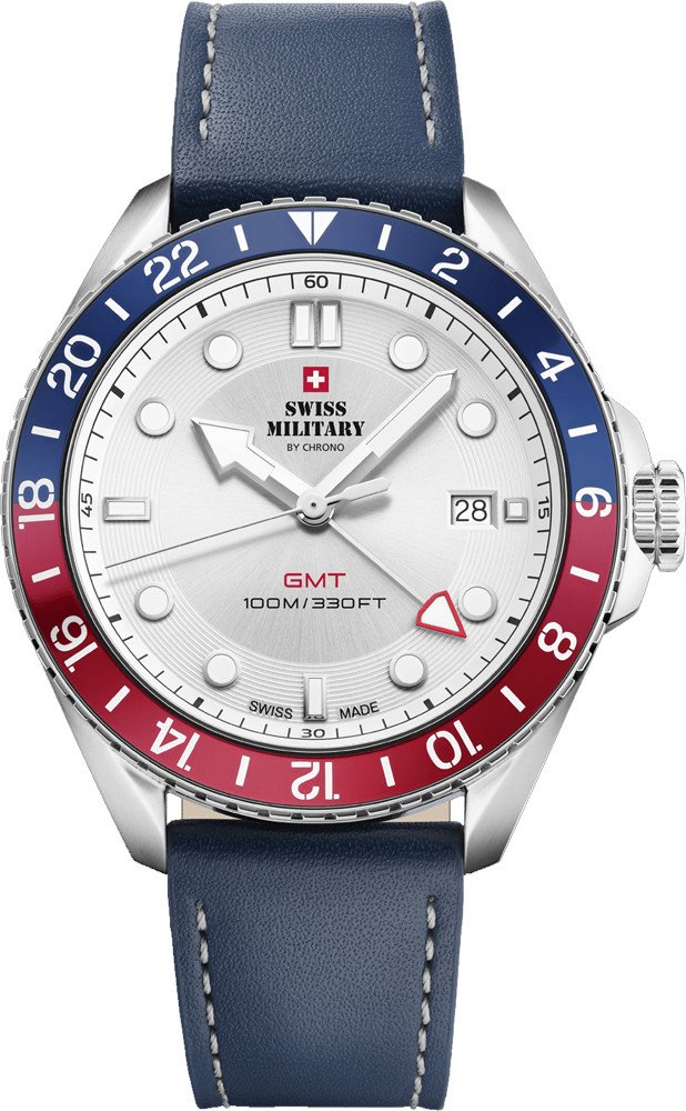 Swiss Military by Chrono analogové kůže klasické pánské bateriové - quartz pro potápění (100+ m) 43.0 mm ocel 100 m bateriové 80 g safírové 21.5 cm bez osazení Mens Watch kulaté modrá bílá s luminiscencí na přezku 2 cm na ruku švýcarské bez číslic 4.3 cm střední obousměrně otočná 20.0 mm 11.0 mm 43.0 mm s dočasným svícením (luminiscence/LED) s nenáročnou údržbou (quartz) bez chytrých funkcí