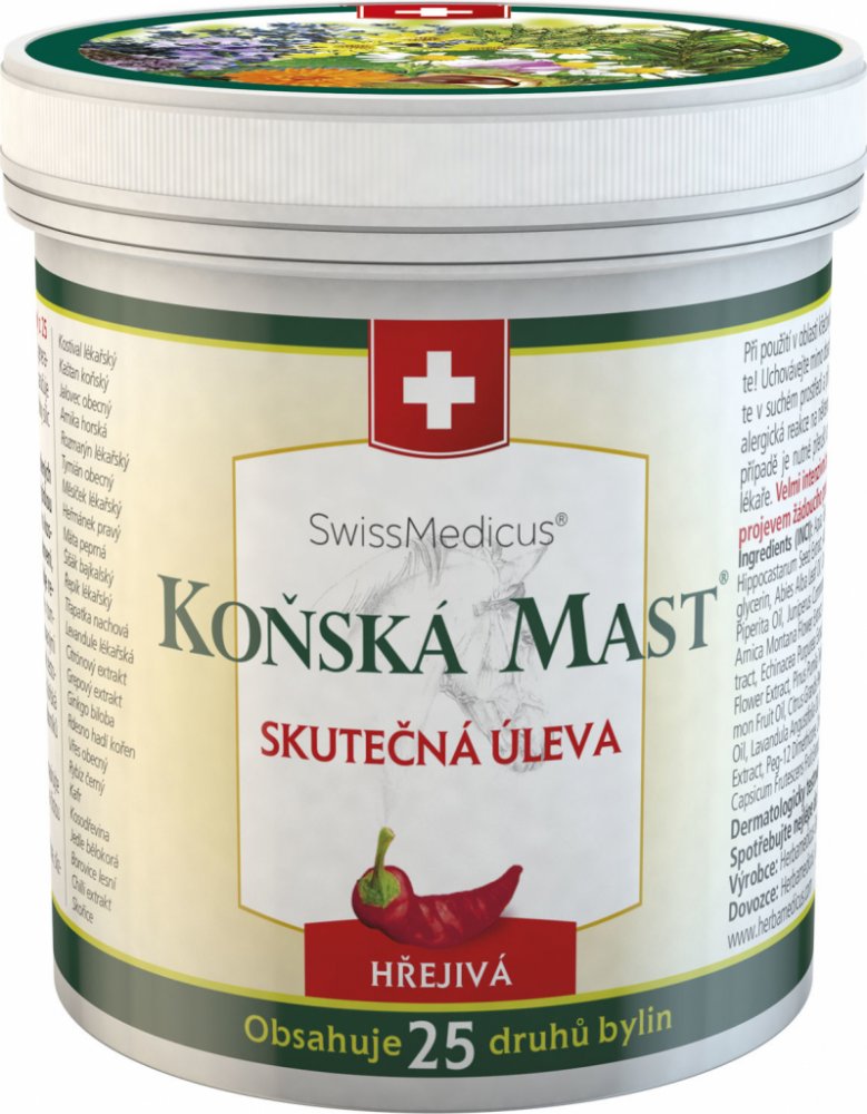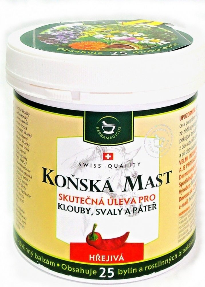 Koňská mast® je unikátní bylinný balzám vyrobený z 25 druhů bylinných