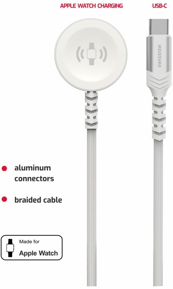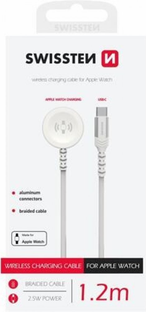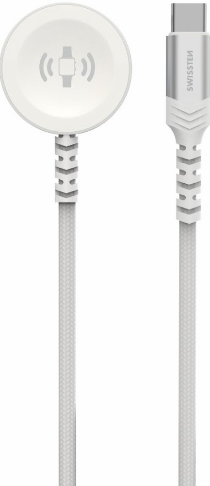 Swissten 22065502 OPLETENÝ MAGNETICKÝ PRO APPLE WATCH KOVOVÝ, USB-C, 1,2m, bílý