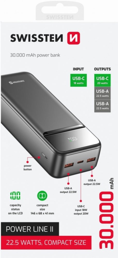 Swissten 30000 mAh Power Line II černá