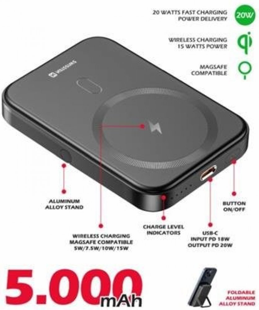 Hlavní předností powerbanky je bezdrátové nabíjením s protokolem Qi, který zajistí bezproblémové nabití vašeho zařízení.