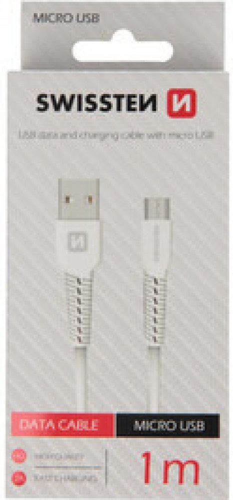 Klíčové vlastnosti produktu Swissten datový kabel micro USB 1m bílý Datový kabel Swissten umožní efektivní přenos dat mezi různými zařízeními 1× USB-A male konektor USB 2.0 s maximální přenosovou rychlostí 480 Mbit/s 1× USB Micro-B male konektor Možnost přenášet data v průběhu dobíjení zařízení vám zajistí funkce Sync & Charge Maximální proud: 2 A Barva kabelu Swissten je bílá a černá Rovné zakončení se řadí mezi nejběžnější a umožňuje snadné připojení k jiným zařízením nebo portům S datovým kabelem Swissten o délce 1 m spojíte zařízení blízko sebe