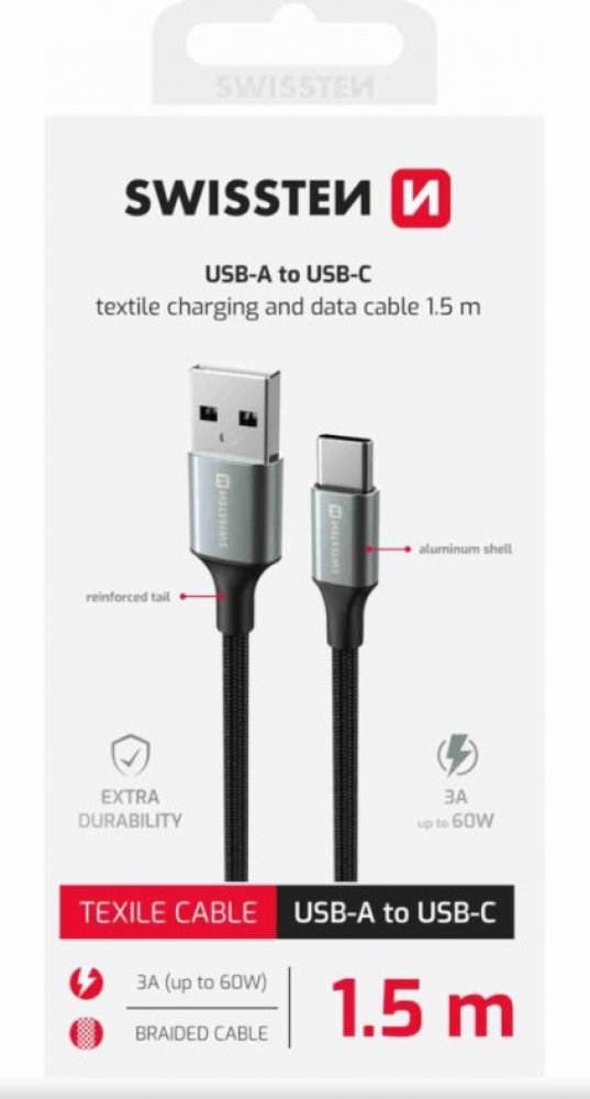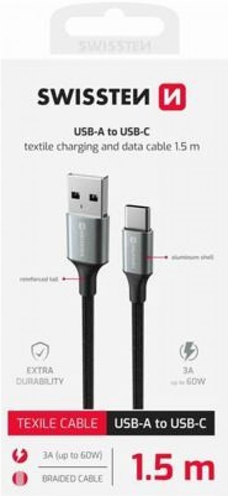 Swissten 71521309 USB / USB-C, 1,5m, černý