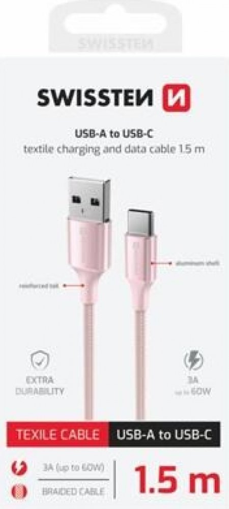 Swissten 71521311 USB / USB-C, 1,5m, růžový