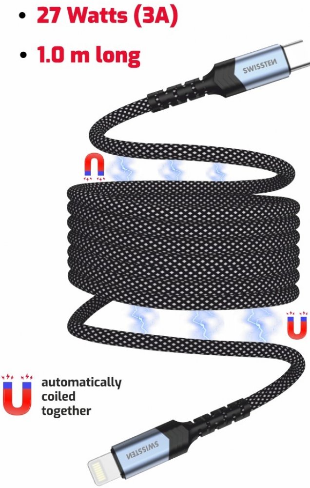 Swissten 71551020 MAGNETICKÝ DATOVÝ SAMONAVÍJECÍ USB-C / LIGHTNING, 1m