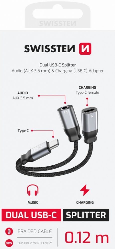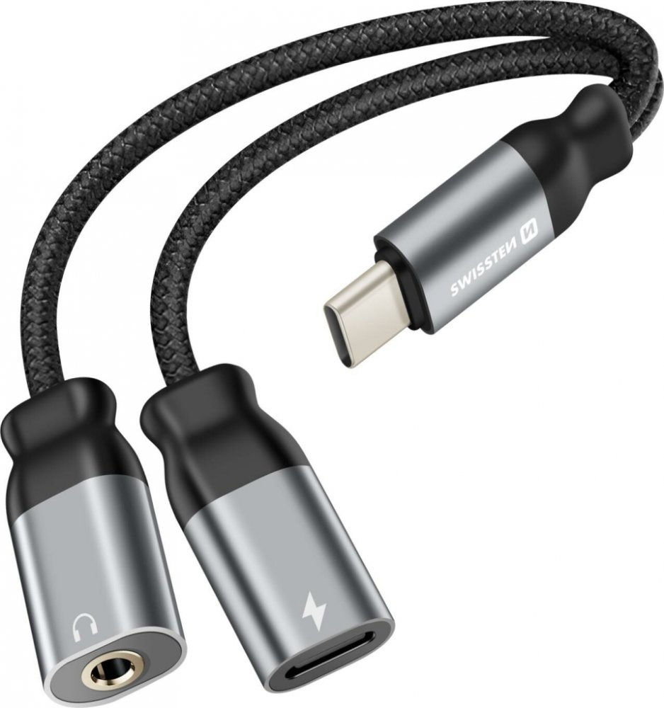 SWISSTEN TEXTILE USB-C na USB-C + 3,5mm jack 12 cm
