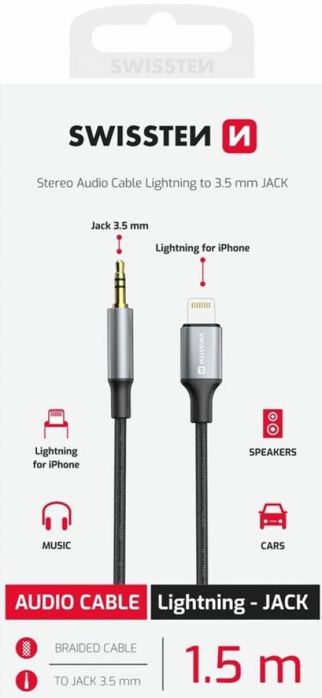 Swissten adaptér Light/JACK 1,5 M ČERNÝ