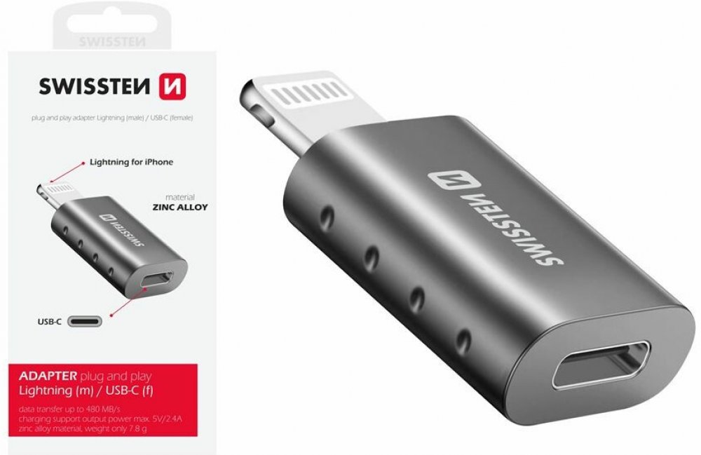 (BAL:1/100) Adaptér - redukce Lightning USB-C pro připojení příslušenství s konektorem USB-C do zařízení s Lightning.Kryt konektorů: eloxovaný hliník.Barva stříbrná.Baleno v krabičce se závěsem.
