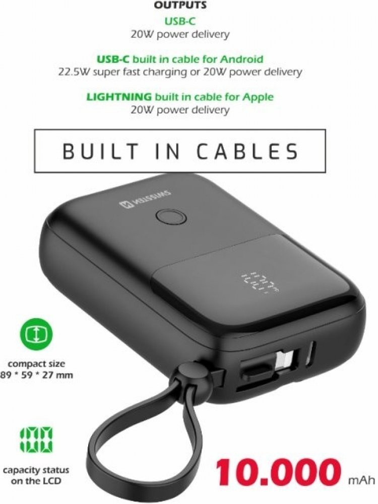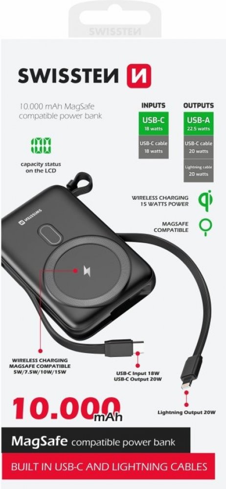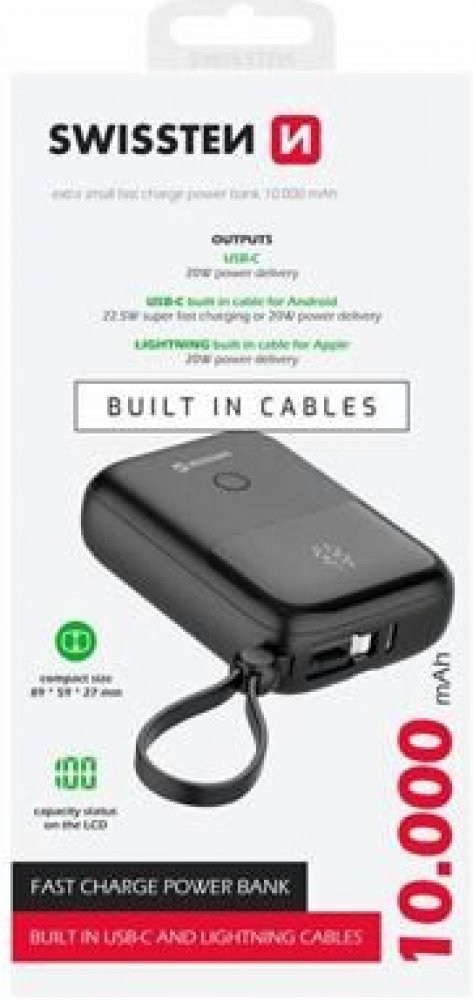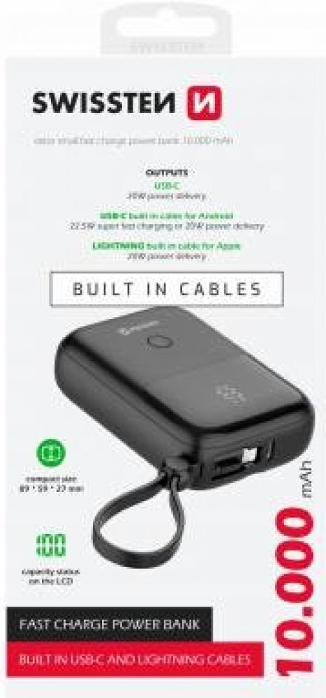 Swissten FAST CHARGE 10000 mAh Lightning a USB-C černá