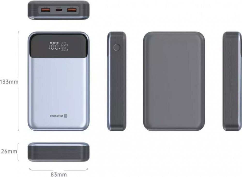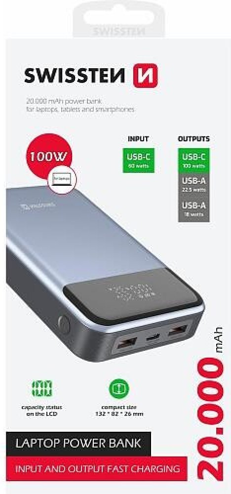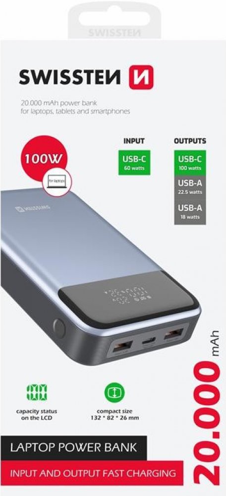 Swissten 20000 mAh Li-Ion 394 g 100 W 5 A 3 černé