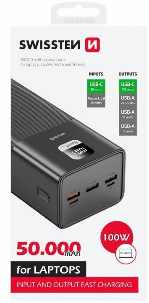 Powerbanka Swissten 50000 mAh 100W - Váš spolehlivý partner na cesty!