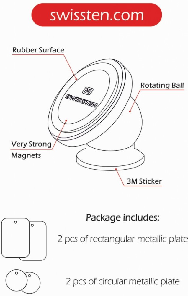 Swissten na palubní desku magnetické 180 g 99 mm 50 mm