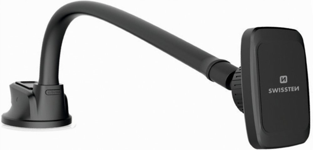 Držák disponuje nejdelším husím krkem v nabídce Swissten, který umožňuje umístit zařízení prakticky kamkoliv – ideální pro auta s hlubokou nebo členitou palubní deskou. Husí krk lze tvarovat dle potřeby a pomocí antivibračního mezikusu zajistit proti vibracím.