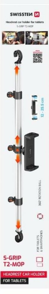 Držák do auta na tablet SWISSTEN S-GRIP T2-MOP je ideálním řešením pro pohodlné sledování obsahu na cestách. Upevňuje se mezi opěrky hlavy zadních sedadel, takže poskytuje stabilní a bezpečné uchycení pro tablety i větší telefony. Díky nastavitelné konstrukci, robustnímu zpracování a 360° otočnému kloubu je vhodný pro dlouhé rodinné výlety, pracovní cesty i každodenní používání.