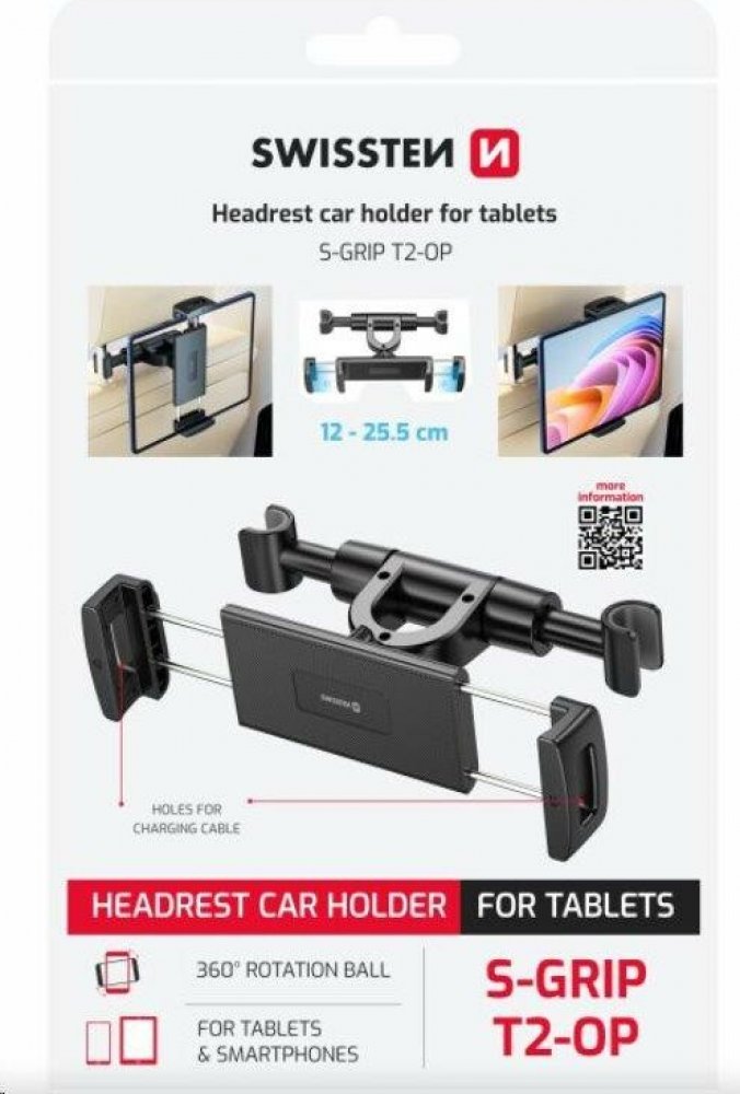 Autodržák na tablet SWISSTEN S-GRIP T2-OP je praktické řešení pro pohodlné sledování médií během jízdy. Tento model se montuje přímo do opěrky hlavy, což zajišťuje stabilní a bezpečné uchycení tabletu nebo většího telefonu. Díky kompaktním rozměrům, snadné instalaci a možnosti otáčení o 360° je ideální pro rodinné cesty i každodenní použití.