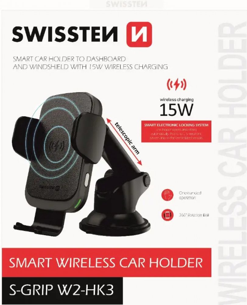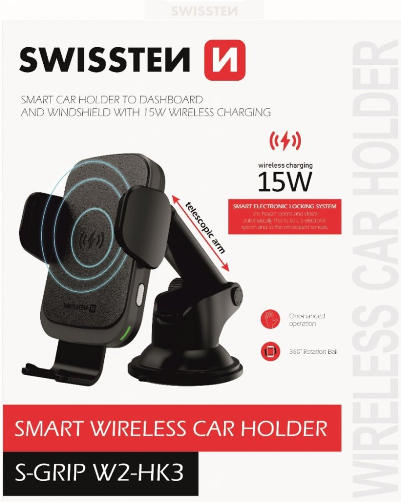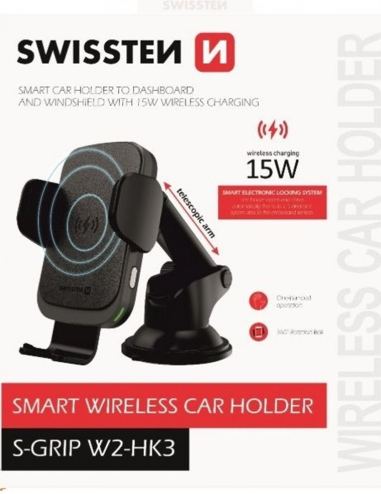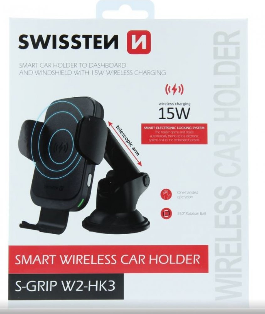 Držák do auta s bezdrátovým nabíjením SWISSTEN S-GRIP W2-HK3 je určen pro umístění na palubní desku. Držák disponuje rychlým nabíjením s výkonem15W. Baleno v blistru Swissten.