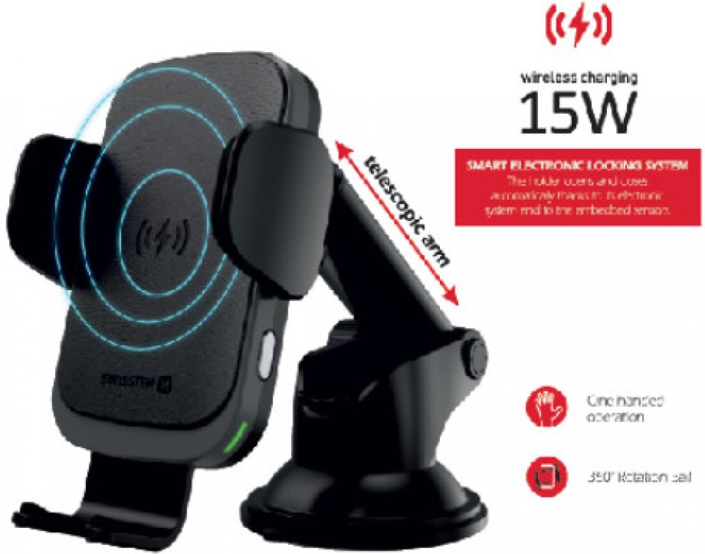 Držák je vybaven elektronikou, která detekuje přiložení smartphonu a držák sám telefon upevní. Po stisknutí elektronického tlačítka se telefon opět uvolní. Držák má integrovaný kondenzátor a tak lze smartphon několikrát uvolnit nebo upevnit i po zastavení vozidla a vypnutí motoru. Díky automatickému zavírání se snadno manipuluje se smartphonem jen jednou rukou.