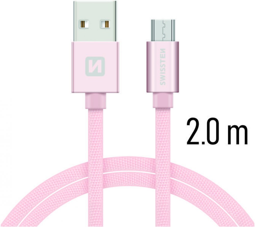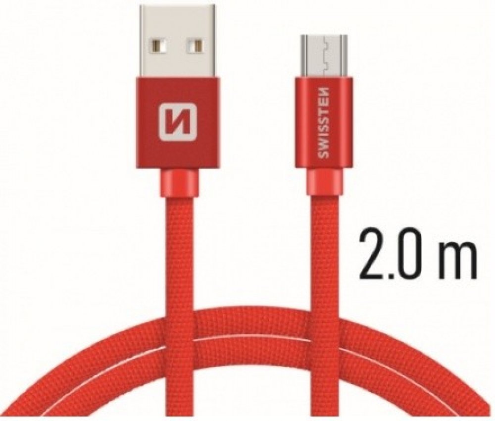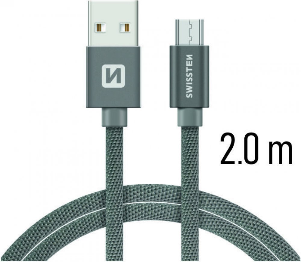 SWISSTEN TEXTILE datový kabel USB - microUSB 2m