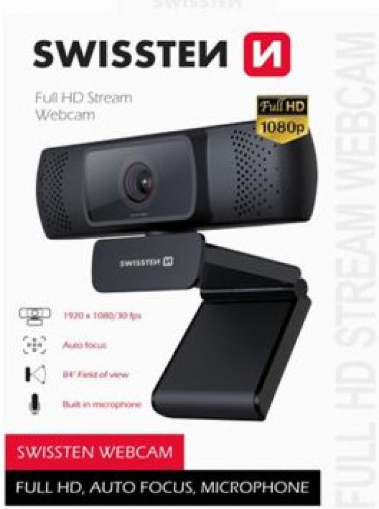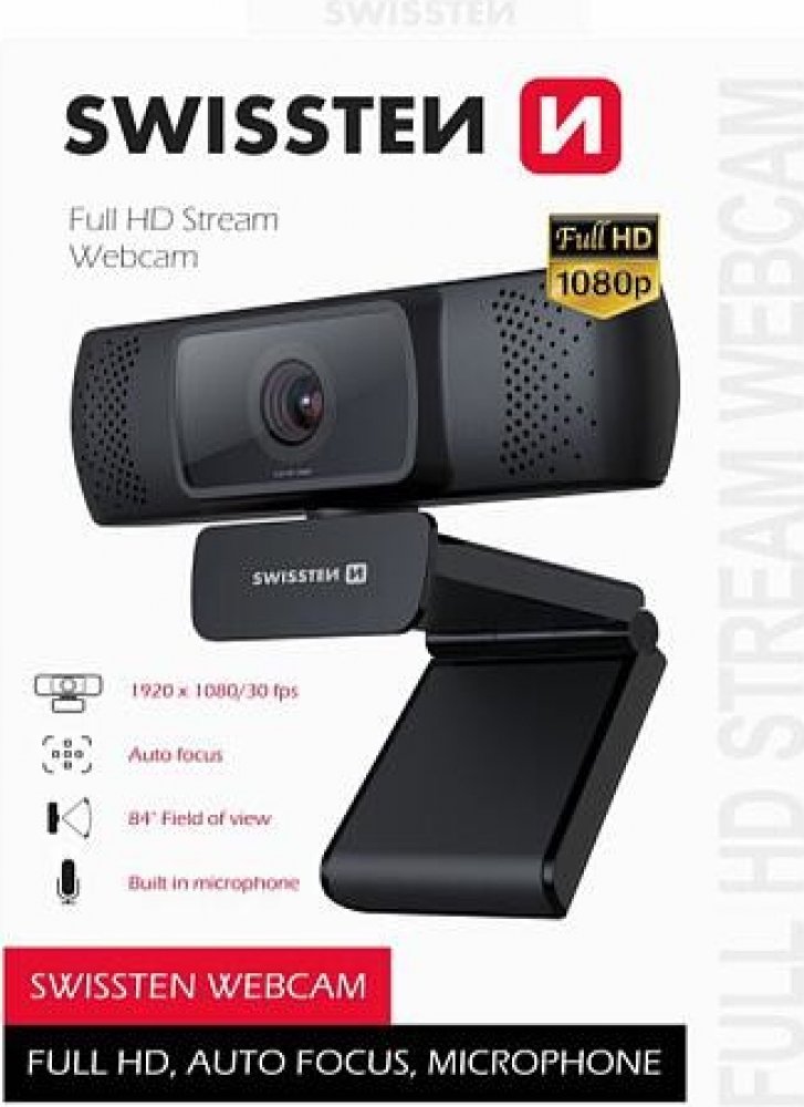 Webkamera SWISSTEN FHD 1080P je vybavena automatickým ostřením, kvalitou obrazu Full HD a je podporována OS Windows, OS X/ MAC OS a dalšími. (webcamera)