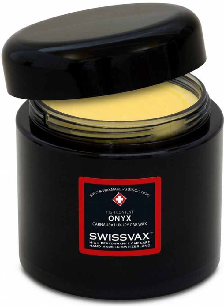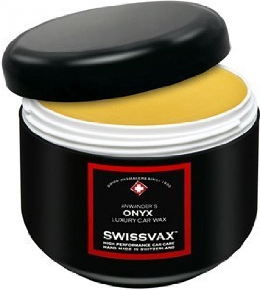 Onyx obsahuje 30% čirého brazilského Carnauba vosku stupně jedna a vytvoří na laku vozidla vysoký lesk a zárověň ho chrání před vodou. Tato receptura, ale není odolná proti roztokům obsahující Natrium, proto tento vosk není vhodný pro použití v zimních podmínkách. Swissvax vosky se používají po očištění a přípravě laku pomocí Swissvax Cleaner Fluid.