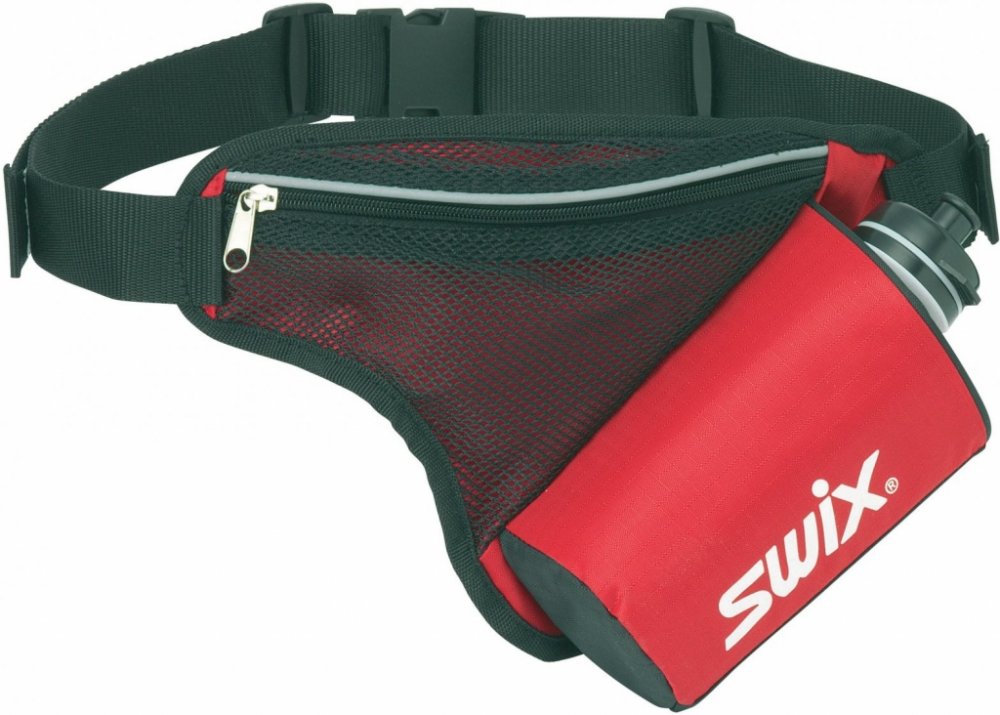 Ledvinka s izolovaným držákem na lahev Swix - včetně lahve. Ledvinka disponuje kapsou na zip ze síťoviny s reflexními prvky, vyztuženým zadním dílem ze síťoviny pro větší prodyšnost a popruh s přezkou.
