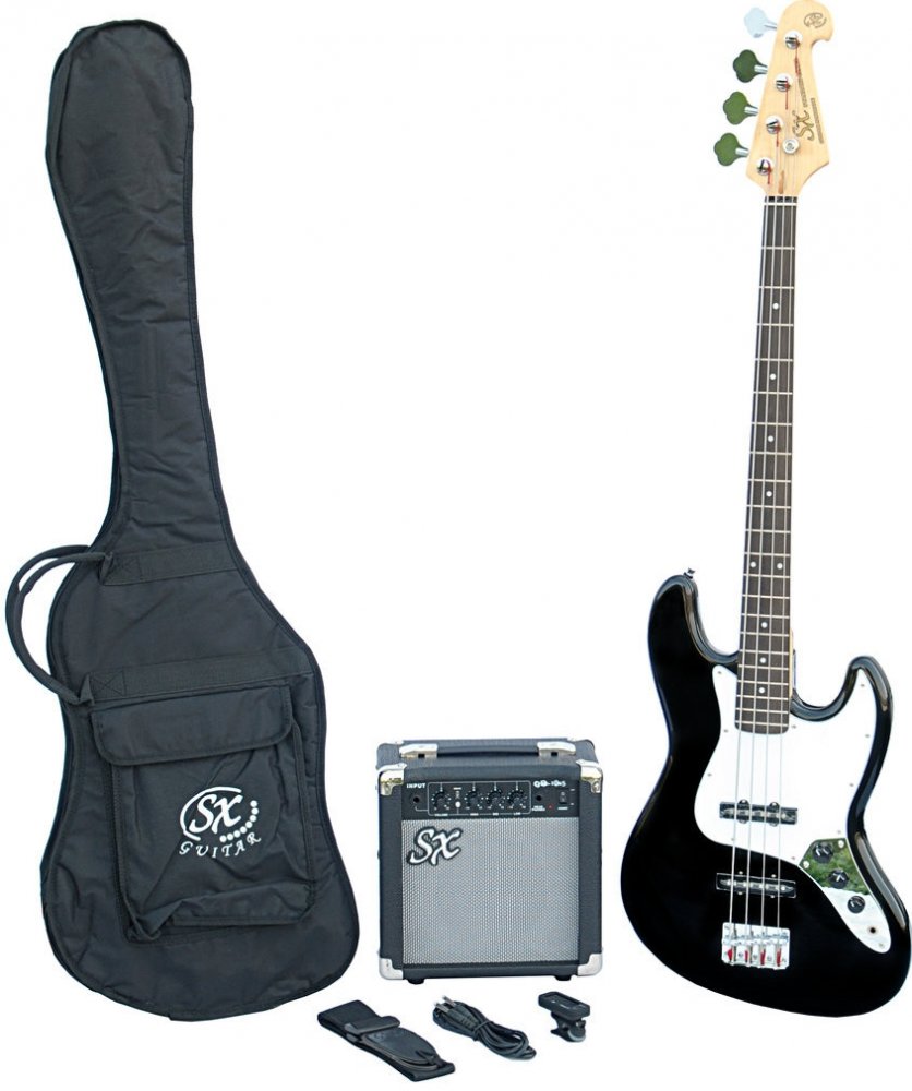 Kompletní set pro začínající baskytaristů. Set obsahuje: elektrickou baskytaru s tvarem těla Jazz Bass, tělo vyrobeno z masivní lípy, krk s oboustrannou výztuhou vyrobený z výběrového kanadského javoru, hmatník z palisandru s 21 pražci a nultým pražcem ze syntetické kosti. Dvojice single coil snímačů s ovládáním 1x Volume a 2x Tone, chromová Open-Gear ladící mechanika, černé barevné provedení. Součástí balení je i 15W kombo jack-jack kabel, klipová ladička, kytarový pás a obal pro baskytaru.