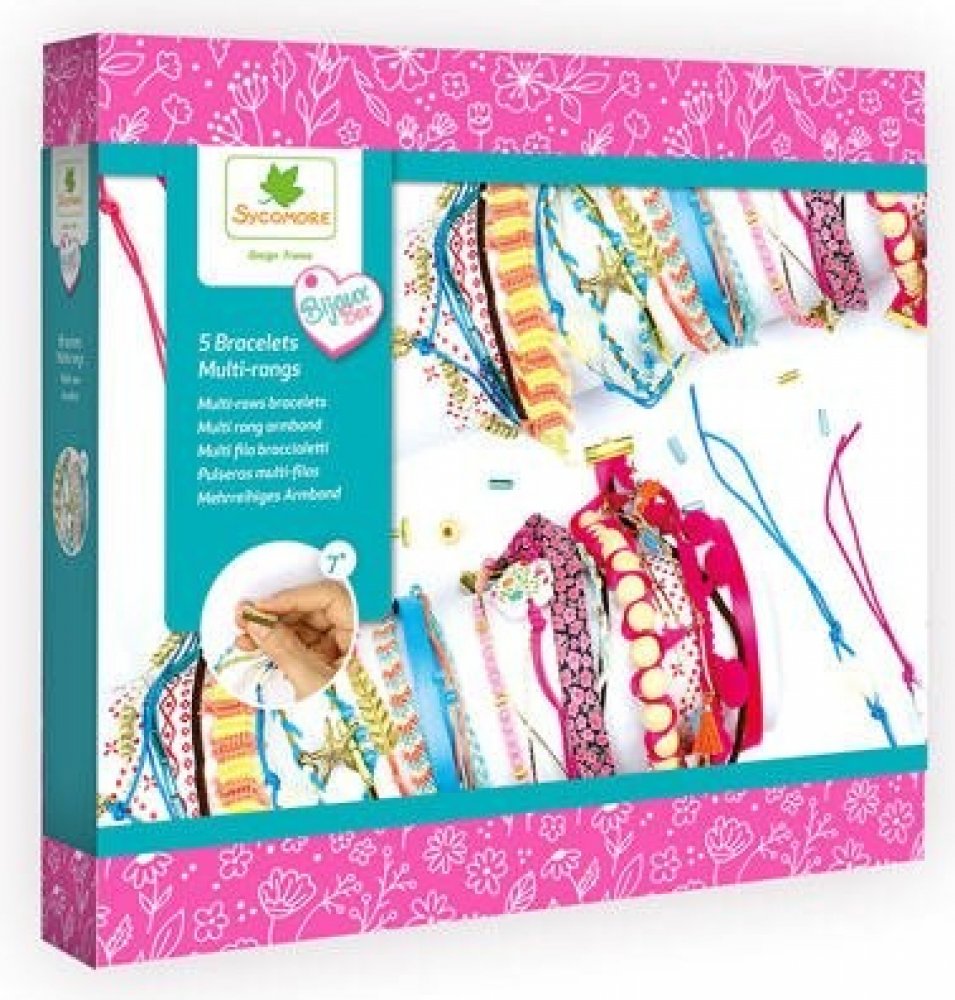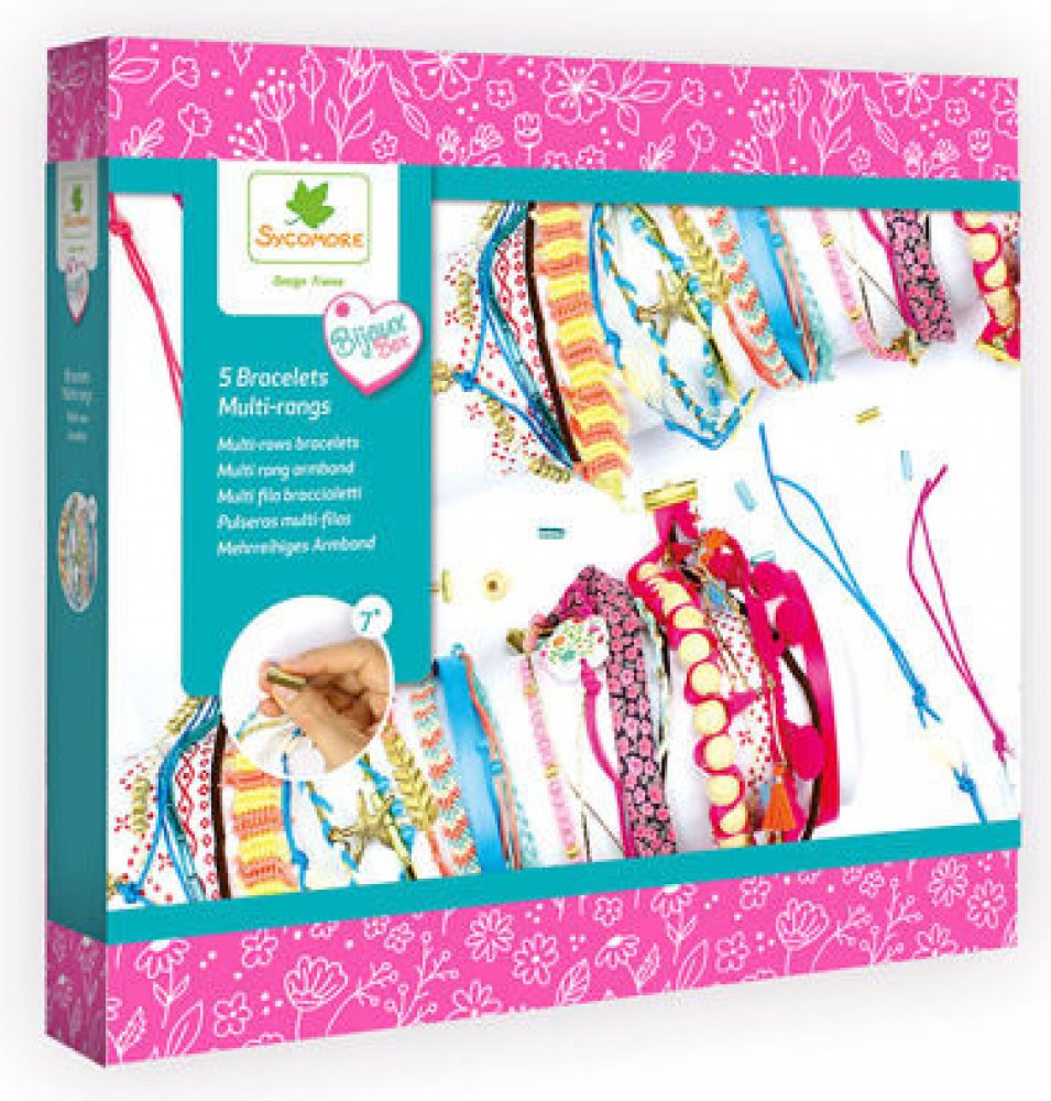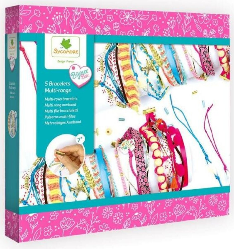 Kreativní šperkařská sada obsahuje vše, co potřebujete k výrobě originálních módních náramků. Pomocí této sady si děti od 7 let vytvoří barevné a hravé doplňky, které jsou lehké a pohodlné na nošení. Sada obsahuje: 25 m bavlněné nitě, 1,5 m voskované nitě, 100 korálků, 16 dřevěných korálků, 30 korálků v tubě, 25 cm kožené nitě, 25 cm stuhy s bambulkami, 3 ocelové přívěsky, 1 mušli, 1 potištěný korálek, 75 cm stuhy, 5 řetízků se zapínáním, 10 velkých zapínání, 1 jehlu, 9 bambulek, 25 cm potištěná stuhy, 5 úchytů pro náramek, 2 stojany na náramky.v Díky tvořivým sadám Sycomore si děti rozvíjejí své schopnosti a užívají si hodiny kreativní zábavy bez mobilů a tabletů!