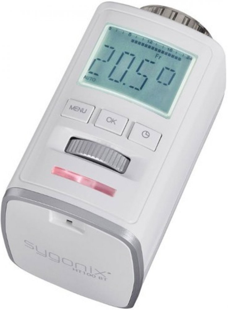 Ušetřete peníze Tento designový termostat umožňuje vytápět váš byt či dům přesně podle vašich potřeb. Náklady na vytápění lze snížit o až 30 %. Ovládání přes Bluetooth HT100 lze nastavovat manuálně pomocí tlačítek nebo přes Bluetooth. Aplikace „Sygonix HT100BT" je zdarma ke stažení z App Store (pro iOS) nebo z Google Play Store (pro Android) do smartphonu nebo tabletu. Made in Germany Termostat s ergonomickým designem. Vysoce kvalitní dvoubarevné pouzdro pro zajímavý vzhled termostatu. Pro výrobu jsou použity pouze kvalitní materiály. Připevnění na topné těleso se provádí pomocí kovové převlečné matice. Smart Energy Control (technologie SEC) Díky inteligentnímu regulačnímu algoritmu PI nastavuje termostat teplotu v místnosti efektivně a podle potřeby. Tichý, neslyšitelný chod termostatu. Dynamický LED indikátor Dynamický LED indikátor zobrazuje fázi vytápění. Snadná montáž Montáž termostatu je snadná a nevyžaduje speciální nářadí, není nutné vypouštět vodu z topení či jinak zasahovat do topného systému. Ovládání přes Bluetooth·Dynamický LED indikátor·Nejmodernější technologie SEC·Kovová převlečná matice Ve smartphonu nebo tabletu musí být integrován čip s technologií Bluetooth Low Energy (BLE) Termostat na radiátor HT100 BT · Plastový adaptér pro RA, RAV a RAVL Danfoss · Pro Apple: iOS 7.1 nebo pro Android 4.3. Bezdrátová termostatická hlavice ovládaná přes smartphone Sygonix HT100 BT, Bluetooth 4.0 od výrobce sygonix v kategorii Dům & zahrada|Šetření energií a vodou|Šetření při vytápění|Regulace vytápění|Termostatická hlavice. Kupujte špičkovou kvalitu za akční ceny na Conrad.cz!
