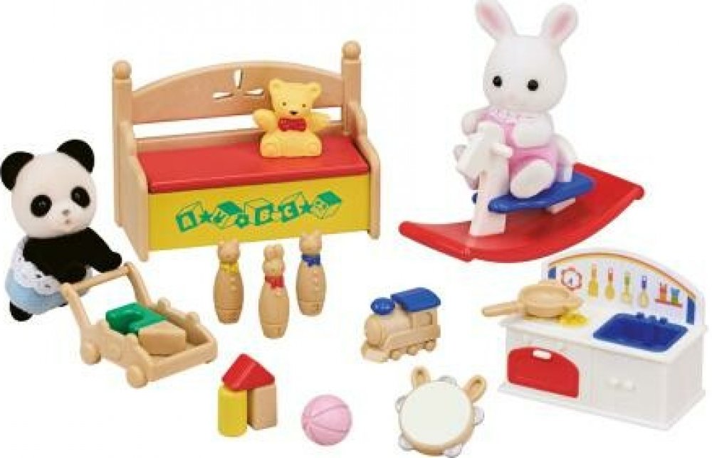 Bábätko pandy Roy a bábätko snežného zajačika Sophie jsou nejlepší přátelé a milují si hrát společně v dětském pokoji. Bábätko pandy a bábätko snežného zajačika se houpe na houpacím koni, staví věže ze stavebnic, chodí na kuželky, muzicírují s tamburínou nebo něco vaří v dětské kuchyňce. Tato barevná sada obsahuje dvě figurky, otevírací bednu na hračky, kuchyňku na hraní, houpacího koně a množství dalších hraček na hraní. Hračky Sylvanian Families rozvíjejí představivost a podporují děti v hraní rolí. Hraní s figurkami Sylvanian Families rozvíjí kreativitu a učí emoce prostřednictvím vytváření a vyprávění příběhů na základě každodenních zkušeností a pozorování světa. Vyznačují se nejvyšší kvalitou a výjimečným důrazem na detaily. Figurky Sylvanian Families mají pohyblivou hlavu. Oblečení je vyrobeno tak, aby se dalo opakovaně svlékat a oblékat. Balené v krabičce. Rozměry balení: 15 x 20 x 5,5 cm. Věk: 3+