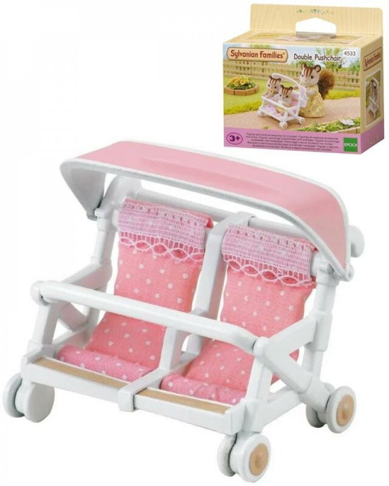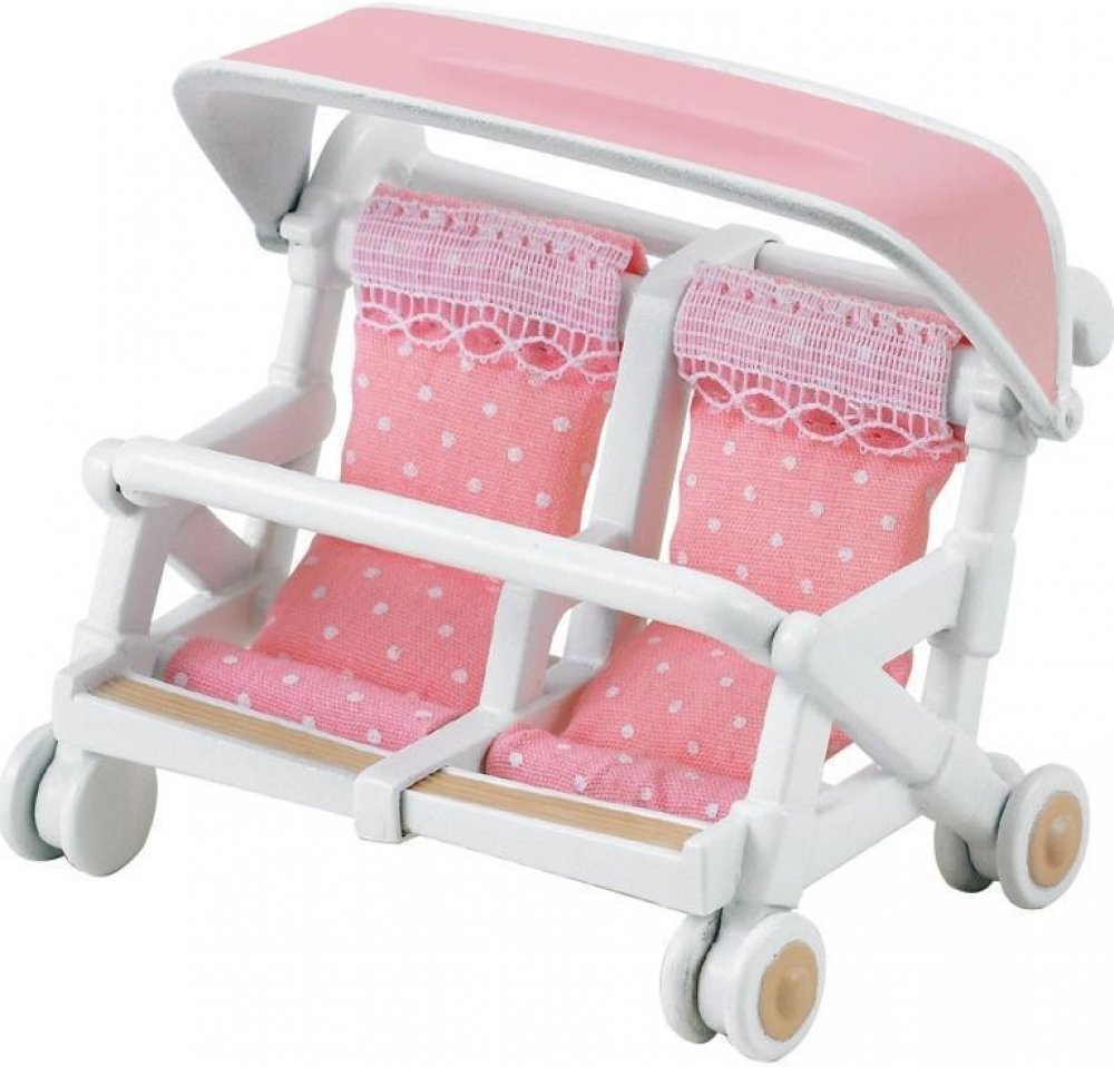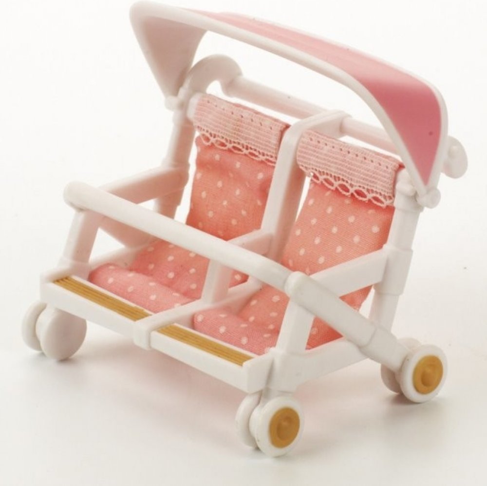 Kočárek pro dvojčata je originální příslušenství pro rodiny zvířátek Sylvanian family. Set obsahuje plně funkční kočárek s místem pro dva králíčky. V kočárku jsou dvě peřinky, dudlík, dvě chrastítka a láhev s mlékem. Balení neobsahuje figurky, ale můžete je snadno dokoupit u nás.