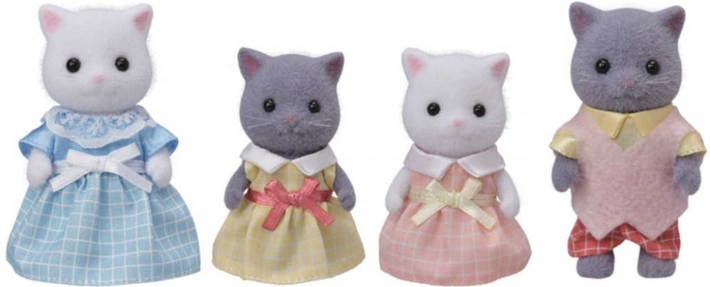 Všichni mají na sobě různé barevné kostkované oblečení. Zkombinujte s miminkem perské kočky, dvojčaty perské kočky a trojčaty perské kočky pro ještě zábavnější hru s 10člennou rodinou (prodává se samostatně). Všechny končetiny jsou pohyblivé a hlavička otáčecí.