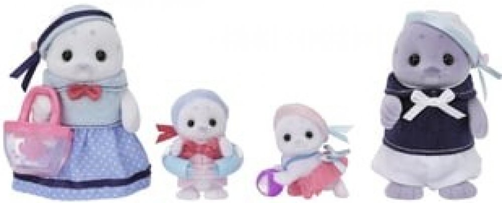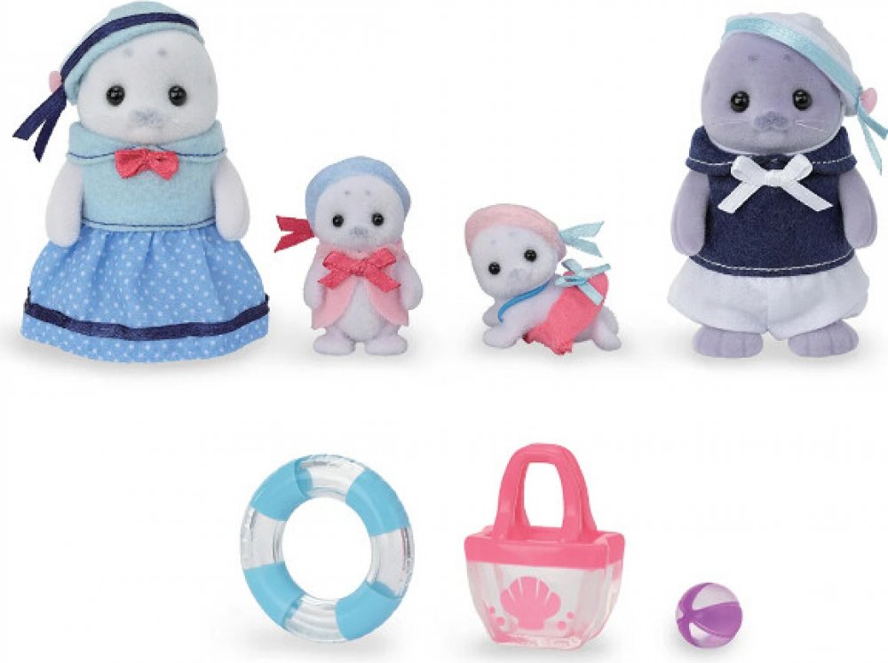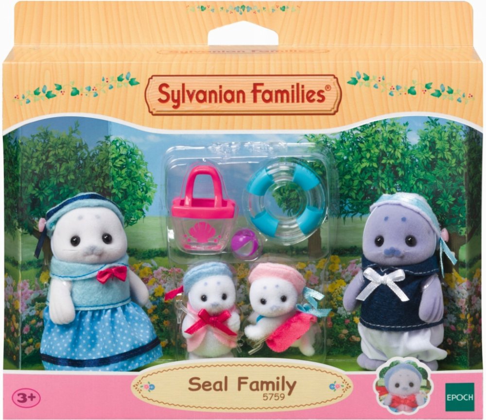 Sada Rodina tuleňů obsahuje 4 figurky roztomilých postaviček ze země Sylvanian Families. Figurky jsou pokryté sametově hebkým kožíškem a mají pohyblivé hlavičky, ručičky a nožičky. Tuleni mají roztomilé zaoblené tvary. Všichni mají stejné charakteristické vrásky nad očima, které připomínají obočí, ušní jamky a fousky. Figurky jsou oblečeny do rozkošných námořnických uniforem. Táta Maurice Floater je skvělý plavec. Kdysi měl přezdívku Mořský blesk z Cape Sea Breeze, ale teď se spíše povaluje a lenoší. Nereaguje ani na to, když ho děti šťouchají do břicha. Maminka Amory Floater je vřelá, přátelská a starostlivá. Kupuje svým dětem spoustu hraček a často říká: „Zatím to zmrazíme!´´ Věří, že když něco zmrazí, čas se zastaví, takže má vždycky přeplněný mrazák. Malý Puffy Floater je velmi opatrný. Když je ve vodě, nedá plavecký kruh z ruky a závistivě se dívá na svou sestru Moffy, která už umí velmi dobře plavat. Každý den trénuje plavání s tatínkem, protože už chce plavat sám! Moffy Floater je velmi aktivní. Je pravým opakem svého bratra. Rychle se naučila plavat, skáče do vody a cáká na všechny kolem. Hra s figurkami Sylvanian Families podporuje představivost. Hračky Sylvanian Families jsou známé svou prvotřídní kvalitou a pečlivým zpracováním každého detailu.