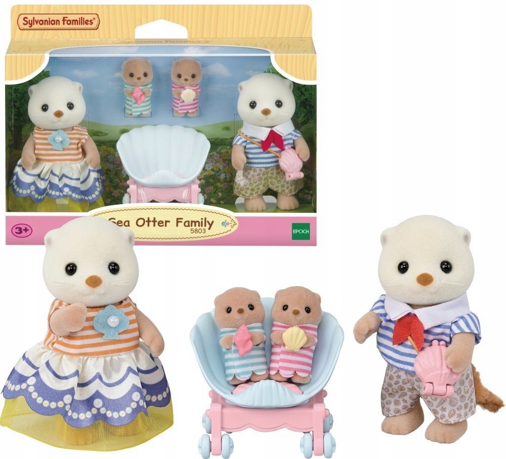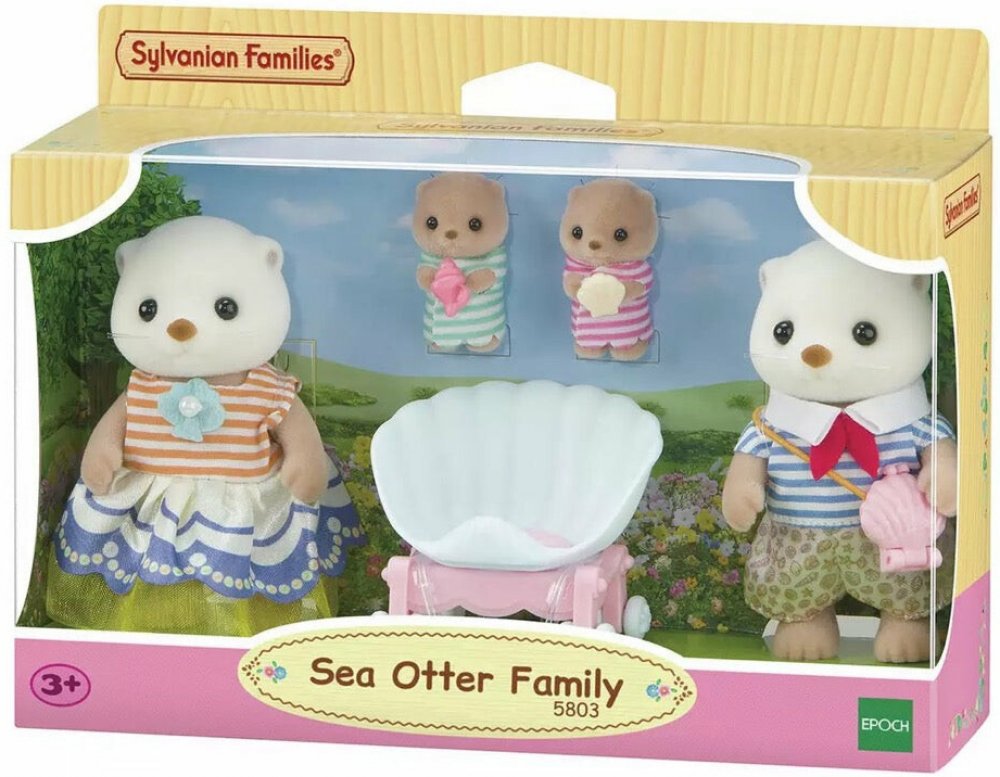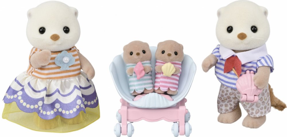Poznejte rodinu mořských vyder Sylvanian Families. Sada obsahuje 4 roztomilé figurky rodiny mořských vyder pokryté měkkým semišem. Mořské vydry mají oblé tvary, malá ouška a roztomilé čumáčky. Vydry milují výlety k moři, kde se cítí jako doma. Maminka Myra, tatínek Colin a dvojčata Cary a Courtney rádi sbírají mušle a pozorují vlny. Dvojčata jezdí v roztomilém vozíku ve tvaru mušle. Cary a Courtney drží své oblíbené mušle. Tatínek Colin miluje trávit čas na pláži a pozorovat moře. Maminka Myra je známá tím, jak rychle dokáže otevřít mušle. Její polévka z mušlí je oblíbená mezi všemi obyvateli Sylvanian Families.