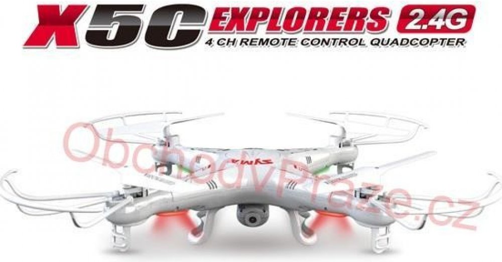 Syma X5c je kvadrokoptéra střední velikosti. Díky 6-axis gyru je model velmi stabilní a vhodný pro začínající uživatele. Na ovladači můžete vybrat ze dvou módů, jeden pro nízkou a druhý pro vysokou rychlost (vhodná pro pokročilé piloty). K tomuto modelu je dodávaná také 2 Mpix kamera.