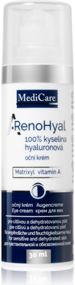 Vaše pokožka okolo očí si zaslouží dokonalou kosmetikou péči. Zejména v takových případech, kdy je citlivá a se sklonem k suchosti – podmínkám vzniku a rozvoje vrásek a ochabování pleti. RenoHyal A 100% kyselina hyaluronová oční krém přináší vaší pleti hloubkovou regeneraci čistou kyselinou hyaluronovou a intenzivní výživu komplexem vitaminu A s kyselinou hyaluronovou a protivráskovým peptidem Mat...